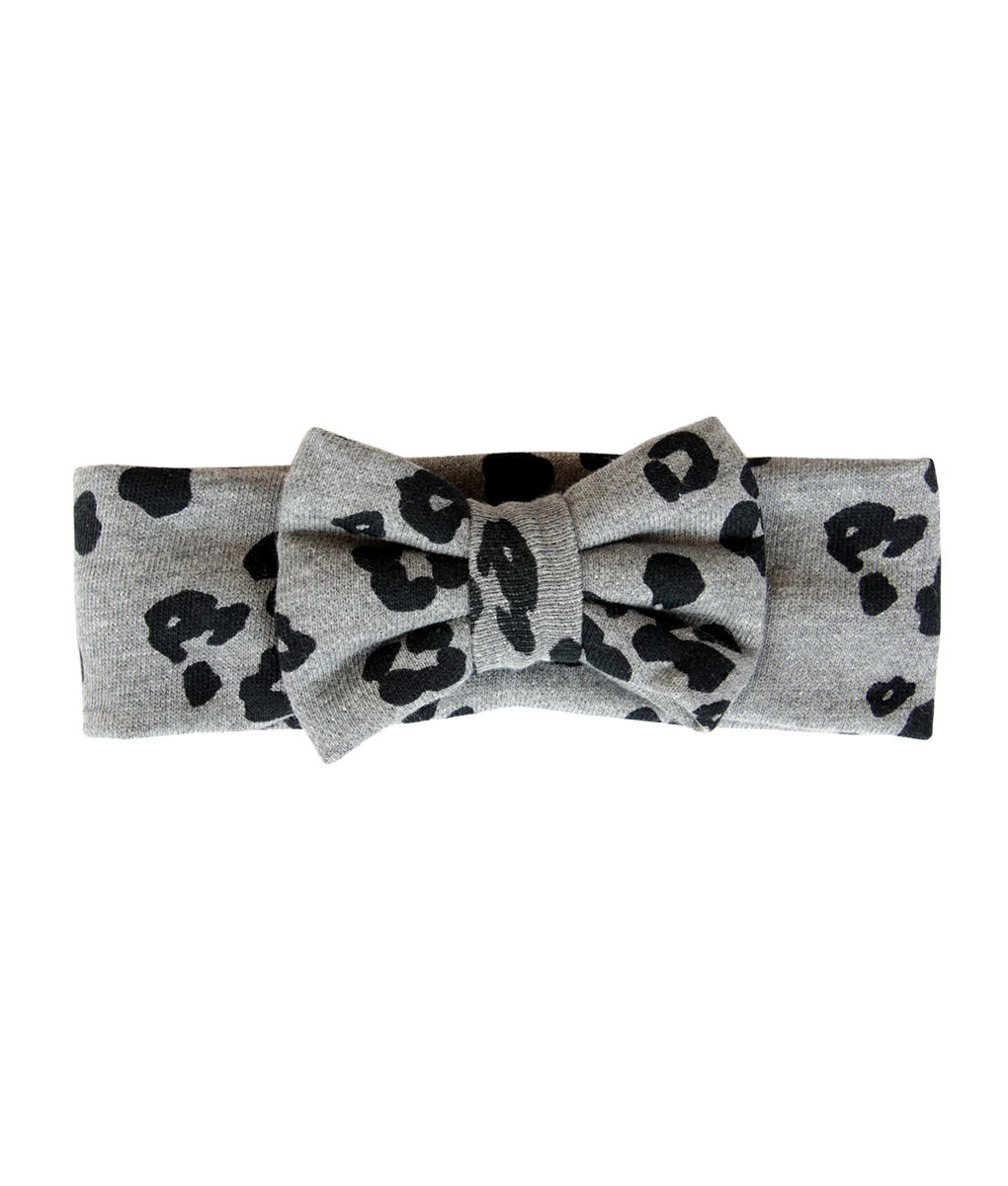 Bandana simple dengan bahan lembut warna abu-abu motif leopard beraplikasi pita besar dengan motif senada. Bahannya nyaman dikenakan si kecil dan akan membuat penampilan si kecil semakin menggemaskan.