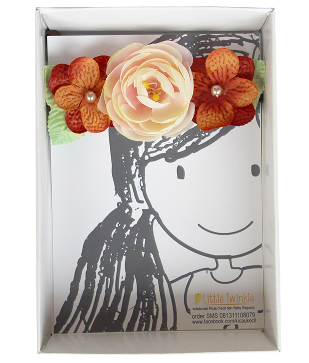 Bandana cantik warna peach berhiaskan bunga peony besar dengan kombinasi bunga kecil dan daun imitasi, dengan elastis skinny, cantik dan elegan untuk dipakai sehari-hari maupun untuk acara spesial atau foto studio. Untuk bayi hingga 7 tahun. Free box dengan minimal pembelian 100rb.