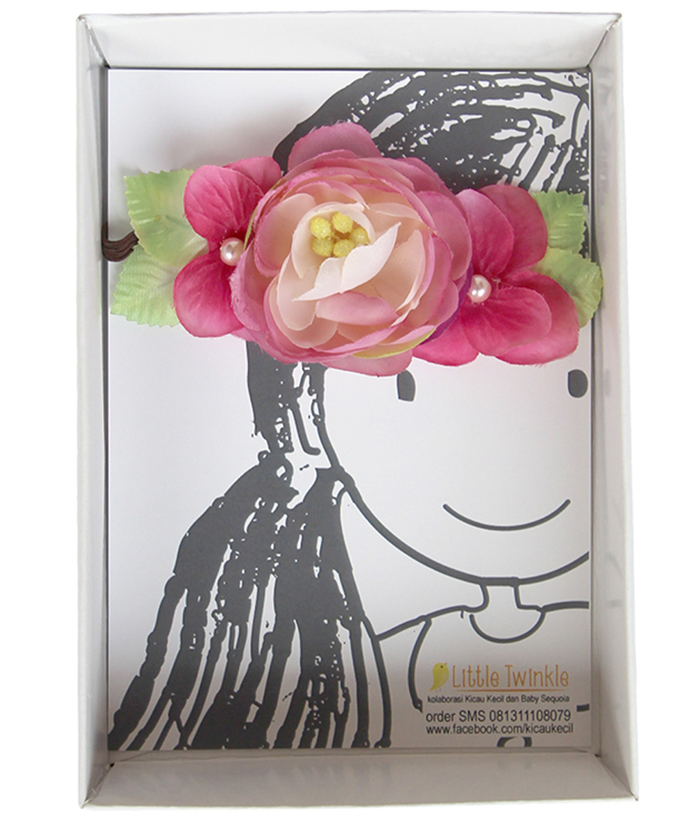 Bandana cantik warna pink berhiaskan bunga peony besar dengan kombinasi bunga kecil dan daun imitasi, dengan elastis skinny, cantik dan elegan untuk dipakai sehari-hari maupun untuk acara spesial atau foto studio. Untuk bayi hingga 7 tahun. Free box dengan minimal pembelian 100rb.