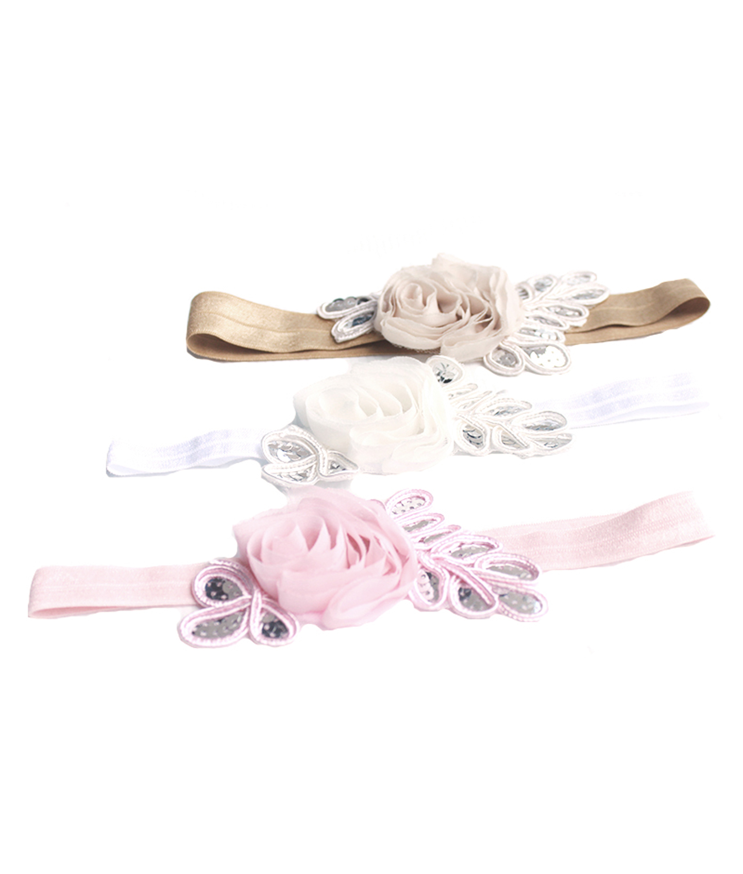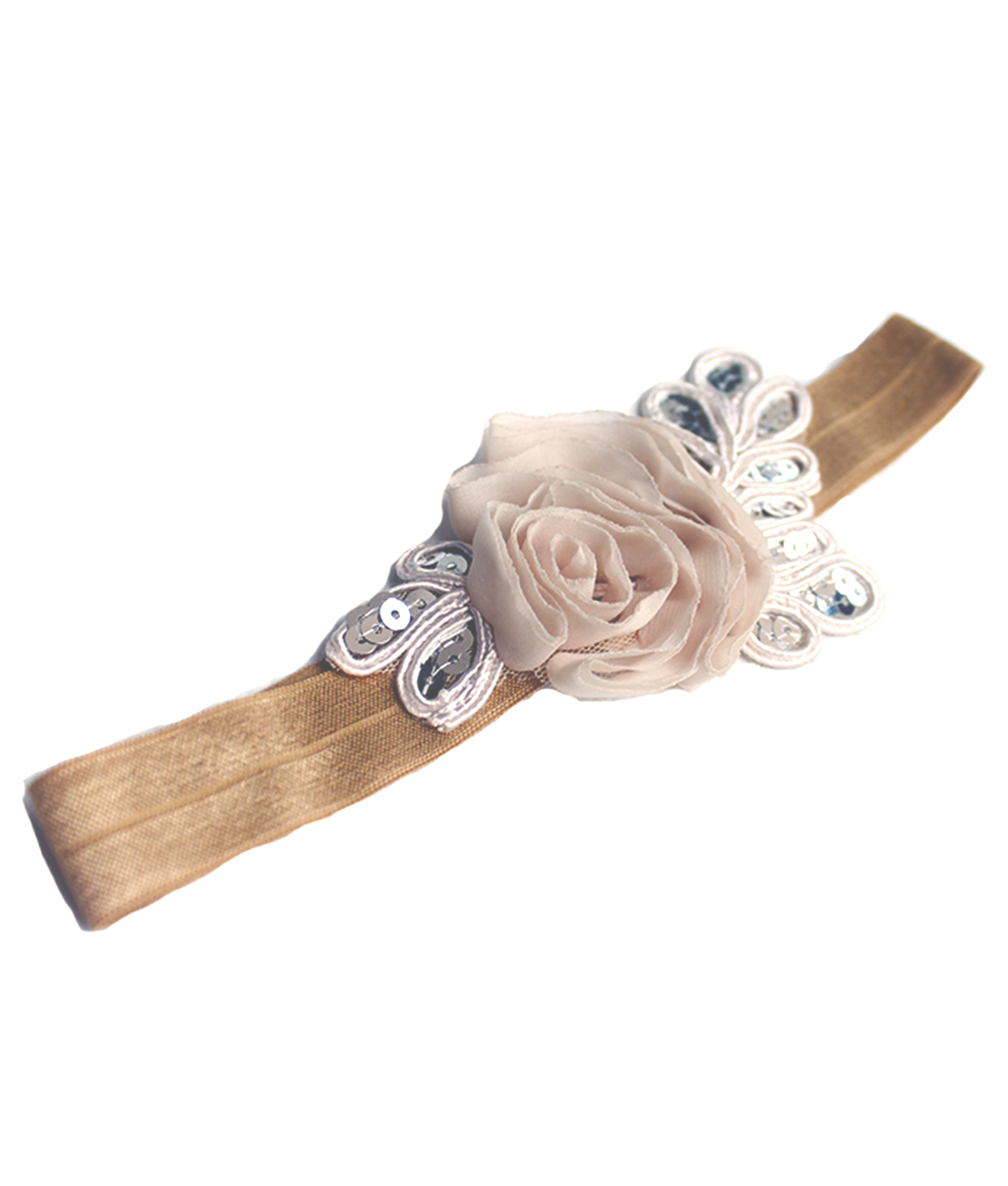 Bandana cantik dalam palet warna netral dengan sebuah mawar shabby yang menampilkan tekstur elegan disertai dengan hiasan daun sequin yang mengkilap, dengan elastis yang lembut, free size untuk bayi hingga dewasa. Free box untuk pembelian minimum 100rb.