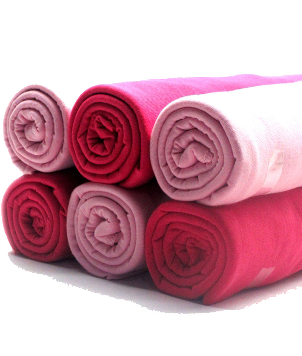 Kain bedong polos serbaguna dengan bahan yang lembut, lentur dan sangat nyaman, dalam kemasan isi 6 lembar yang ekonomis, warna pink tua dan pink muda.