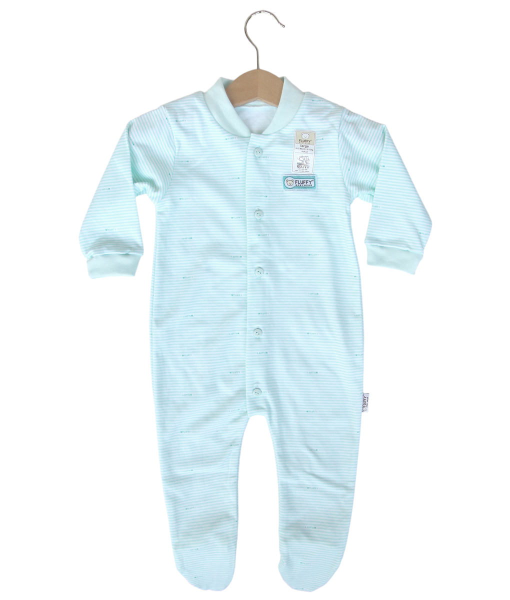 Sleepsuit lengan panjang celana tutup kaki untuk bayi, motif stripes salur warna hijau. Standar cutting.