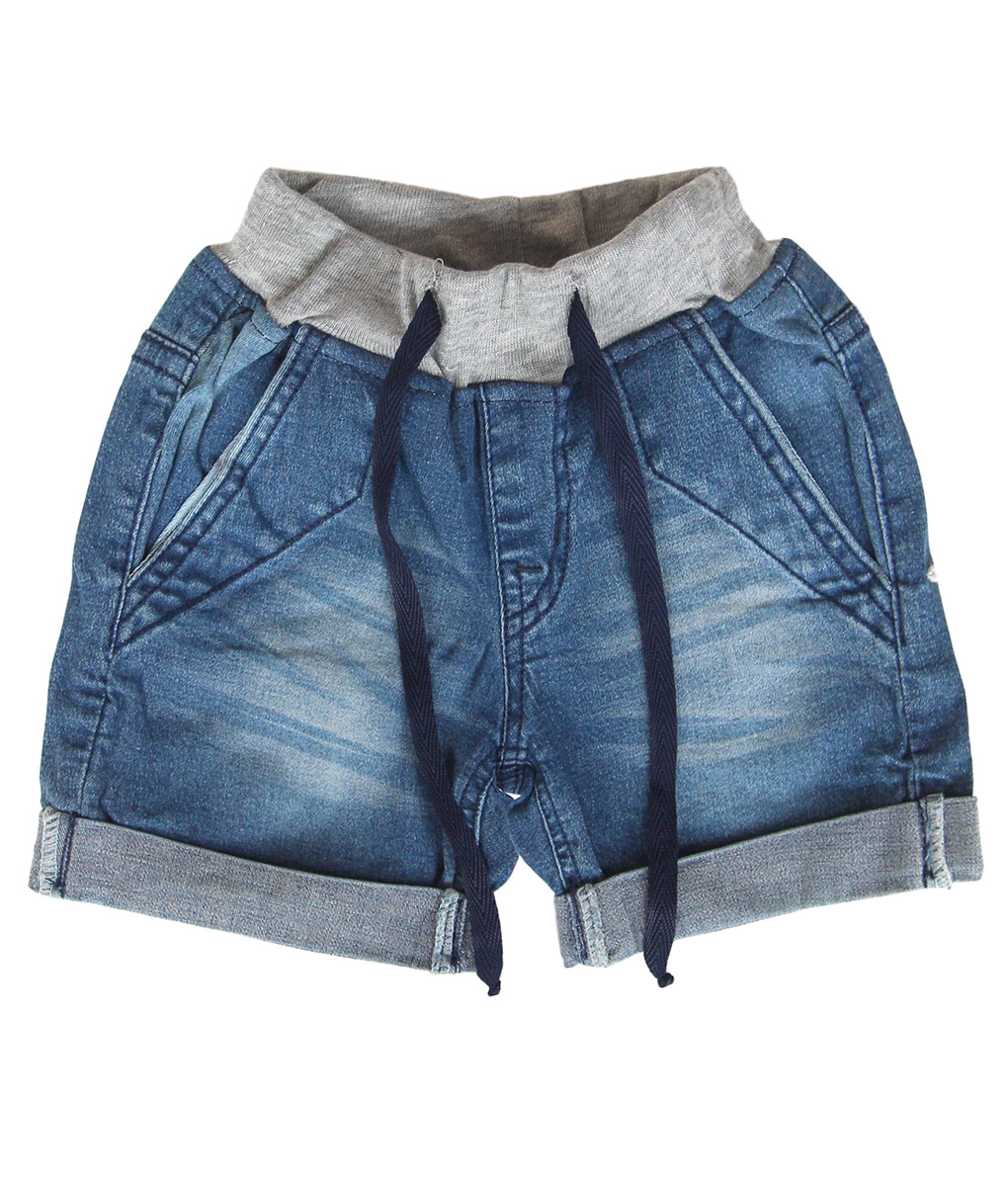 Celana jeans pendek anak usia 1-6 tahun, dengan pinggang karet dilengkapi tali agar dapat disesuaikan dengan pinggang si kecil. Dengan aksen bagian bawah celana yang digulung. Standard cutting.
