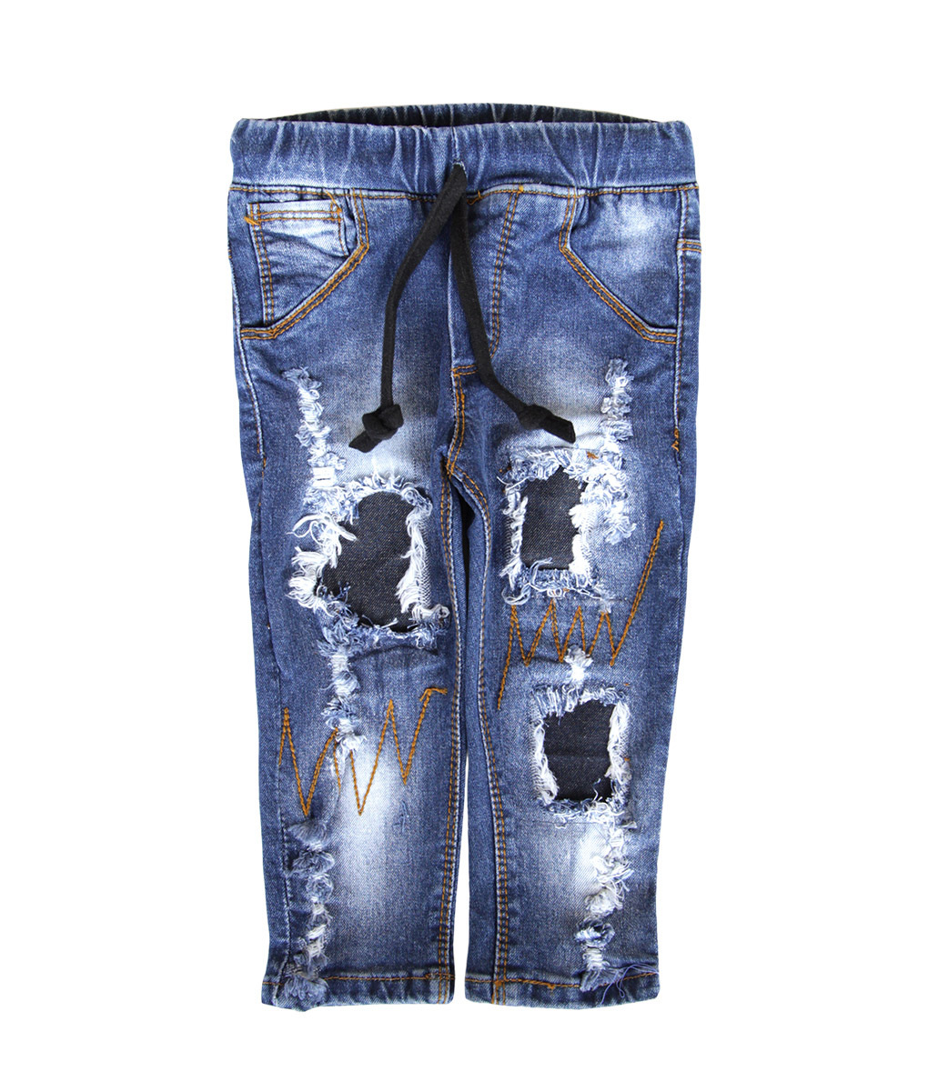 Celana jeans unisex untuk anak usia 1-5 tahun dengan aksen ripped jeans yang edgy. Berpinggang karet sehingga tetap nyaman dikenakan si kecil dalam beragam aktivitasnya. Standard cutting.