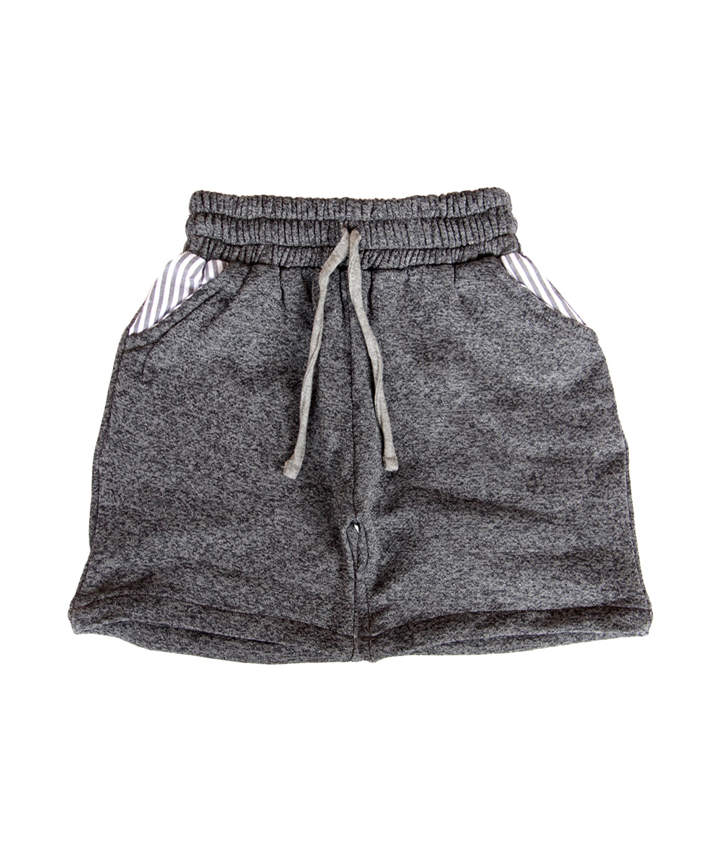 Celana pendek berbahan terry warna abu-abu dengan aksen dalaman kantong berwarna abu-abu. Berpinggang karet sehingga tetap nyaman di kenakan oleh si kecil. Standard cutting.