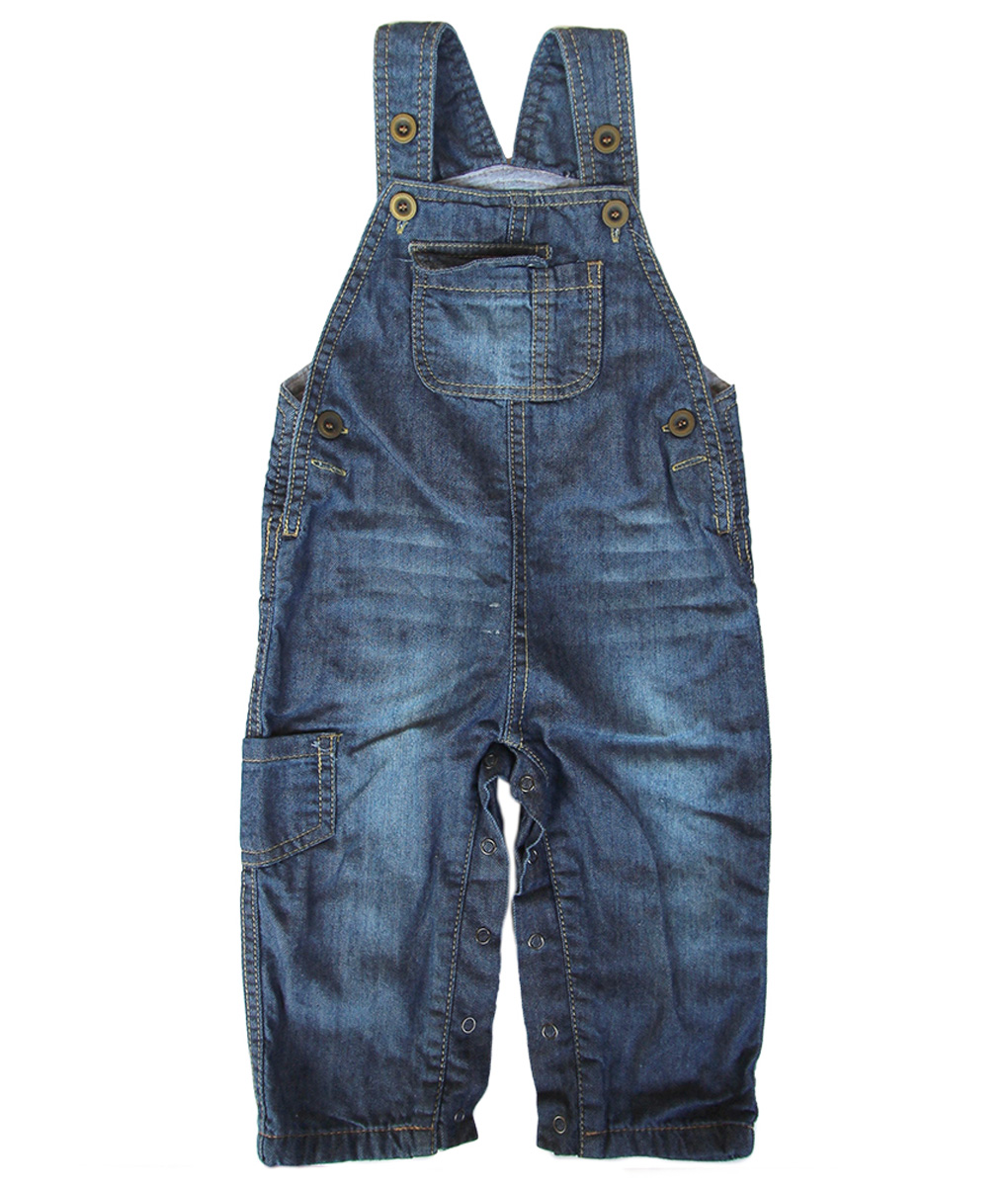 Overall jeans warna biru tua, panjang tali bahu dapat disesuaikan, disertai kancing dibagian bawah untuk mempermudah pemakaian. Standar cutting.