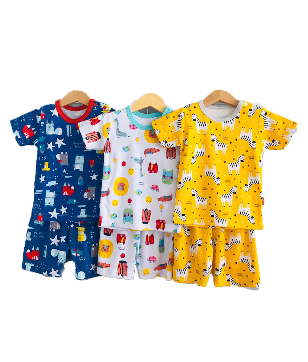 Paket isi 3 pasang short shirt + celana pendek dengan bahan cotton halus dan motif yang menggemaskan