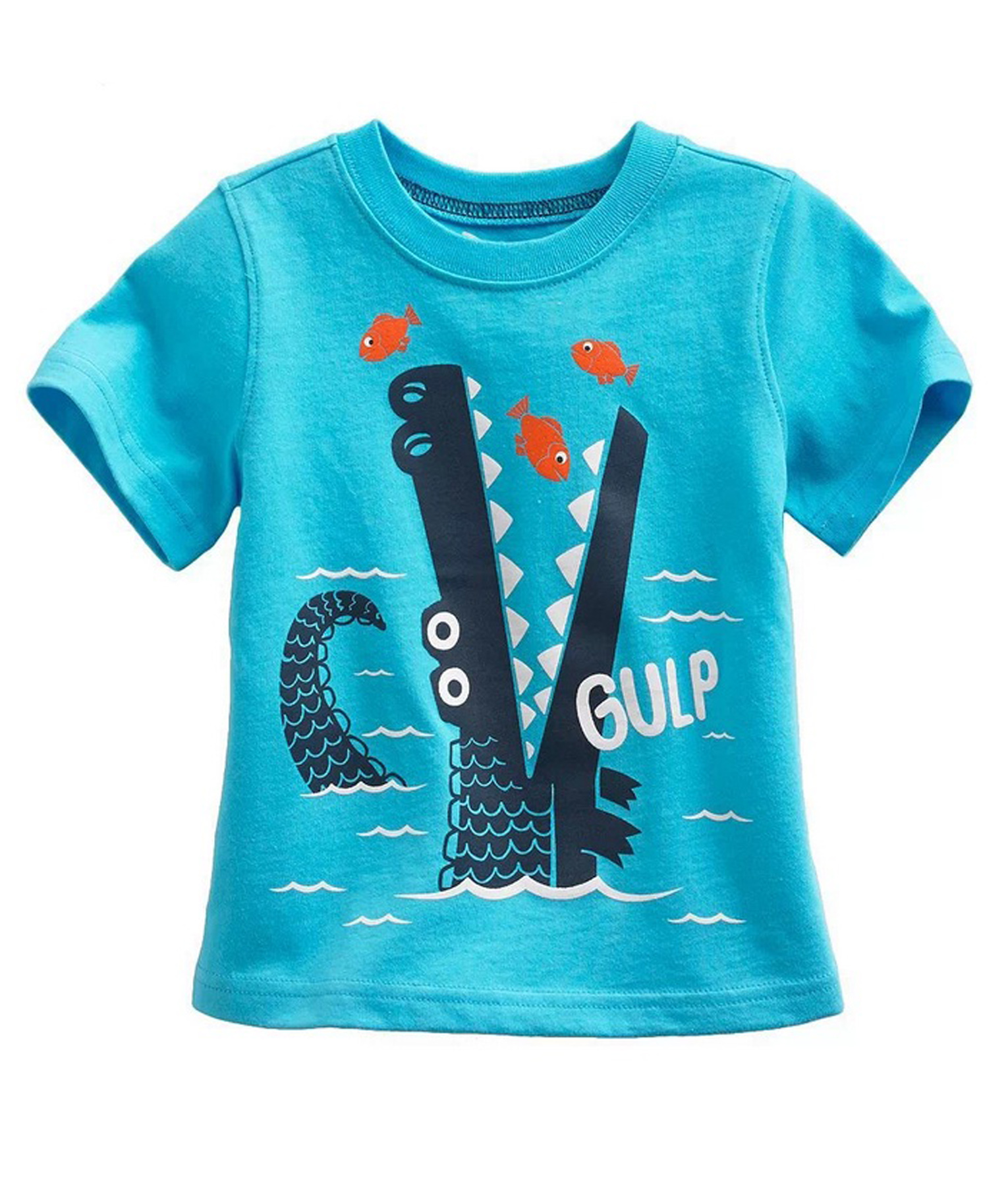 Kaos anak dengan bahan cotton yang nyaman untuk bermain di rumah dan tetap stylish untuk bepergian, warna biru dengan gambar buaya yang siap memangsa ikan-ikan kecil. Standard cutting.
