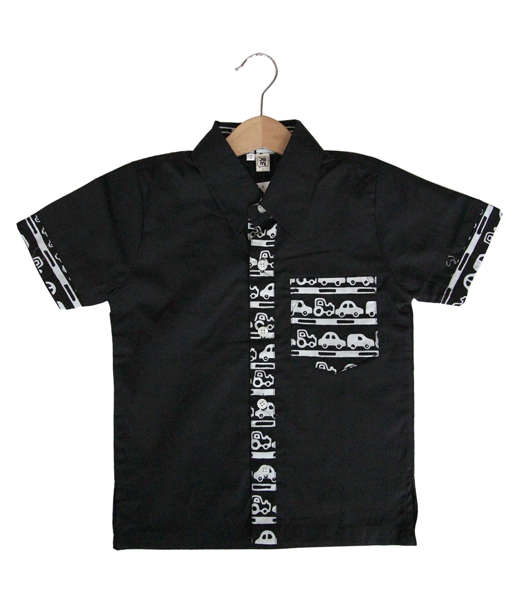 Kemeja anak usia 3-5 tahun warna hitam dengan aksen list bermotif mobil-mobilan, serta kantong dengan motif senada. Kemeja semi formal ini nyaman dikenakan si kecil dalam beragam aktivitas sehari-harinya. Standard cutting.