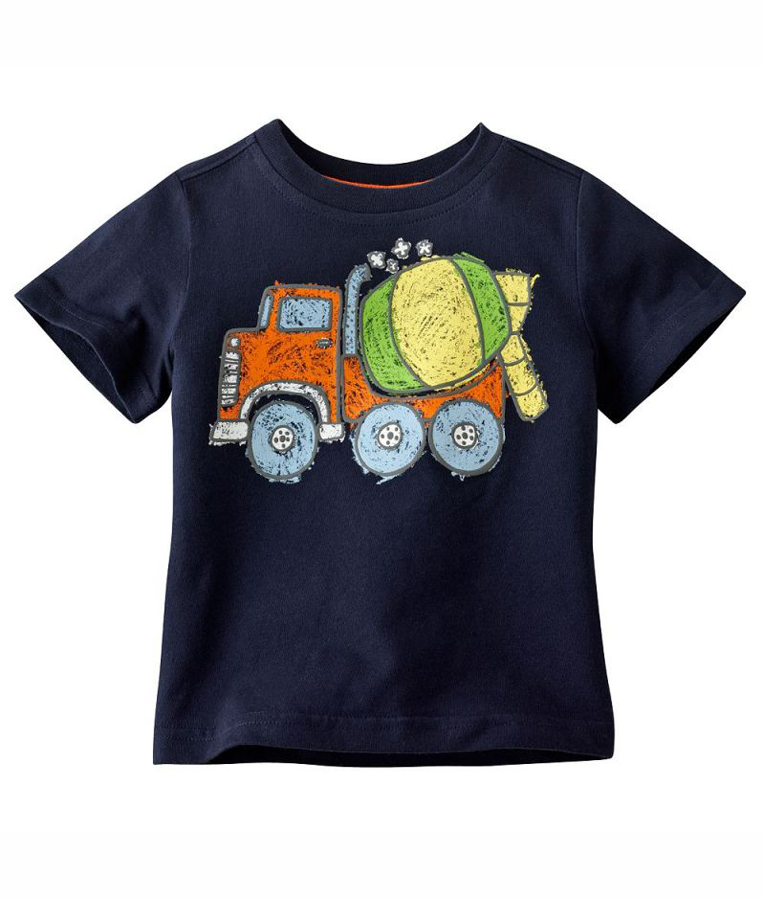 Kaos anak bahan cotton yang nyaman untuk di rumah dan tetap keren untuk bepergian, warna biru tua dengan gambar coretan truk semen. Standard cutting.