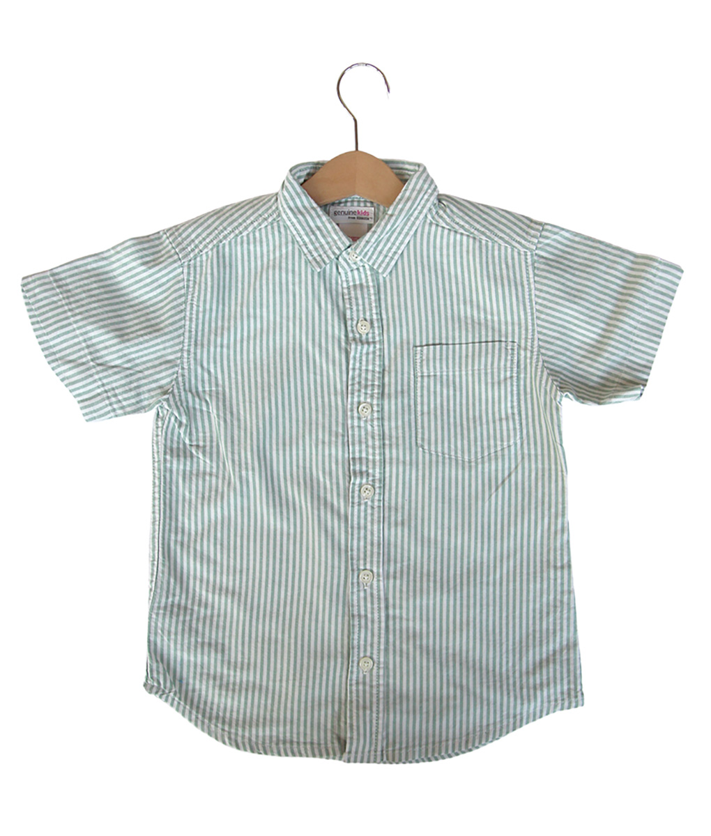 Kemeja lengan pendek untuk anak usia 5 tahun warna hijau motif garis-garis dengan kantong kecil pada dada kiri. Bahannya nyaman untuk dikenakan dalam beragam acara. Standard cutting.