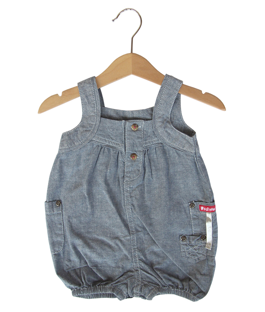 Romper bayi tanktop bloomers dengan potongan menggembung sehingga tampak menggemaskan saat dipakai, warna keabu-abuan, aksen kerutan pada bagian kaki. Standard cutting.