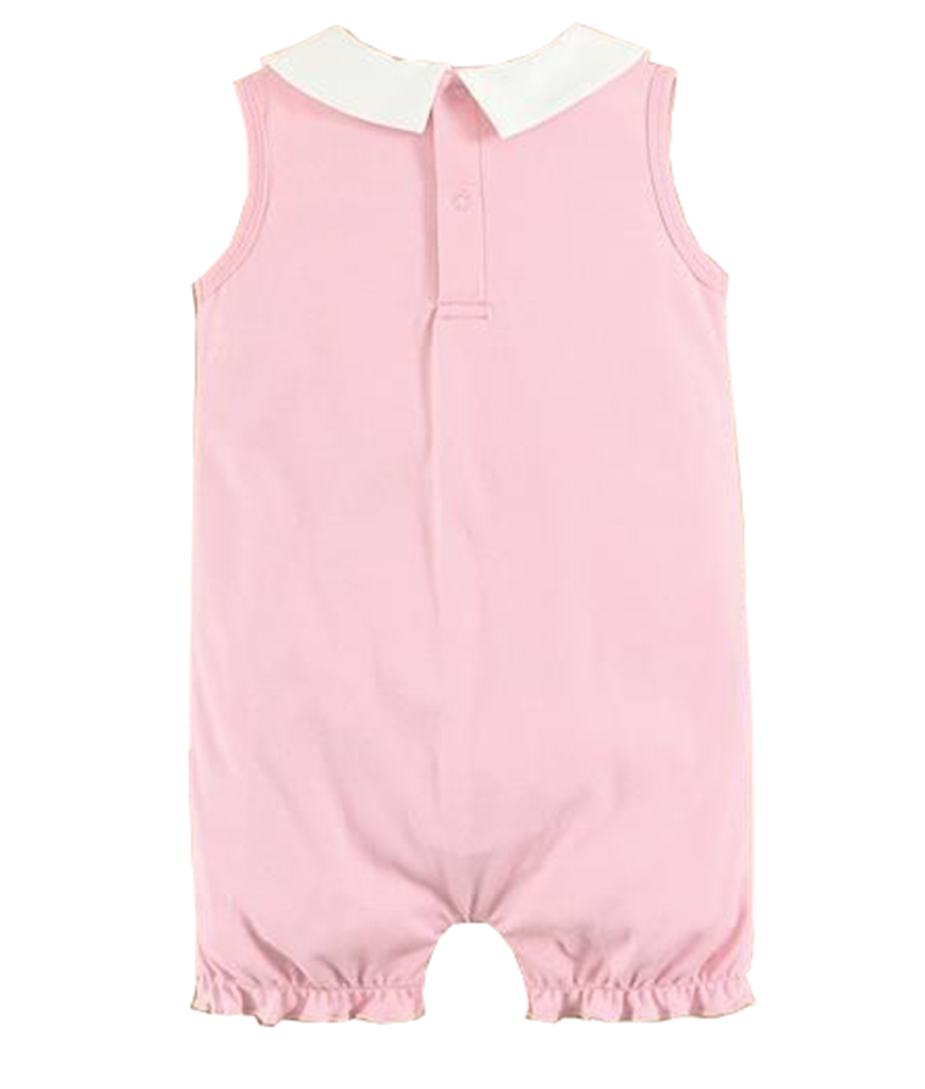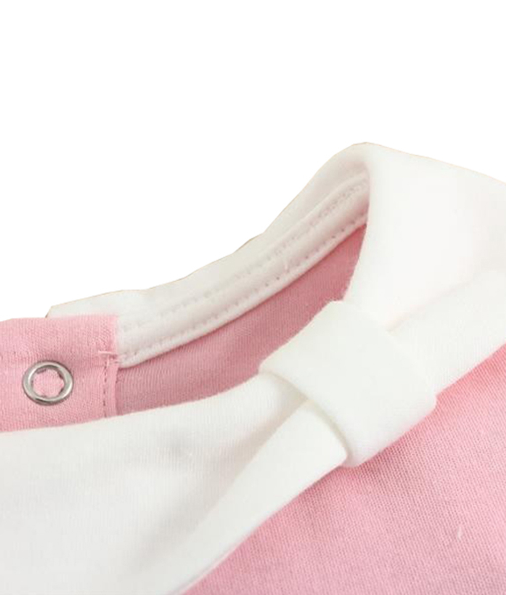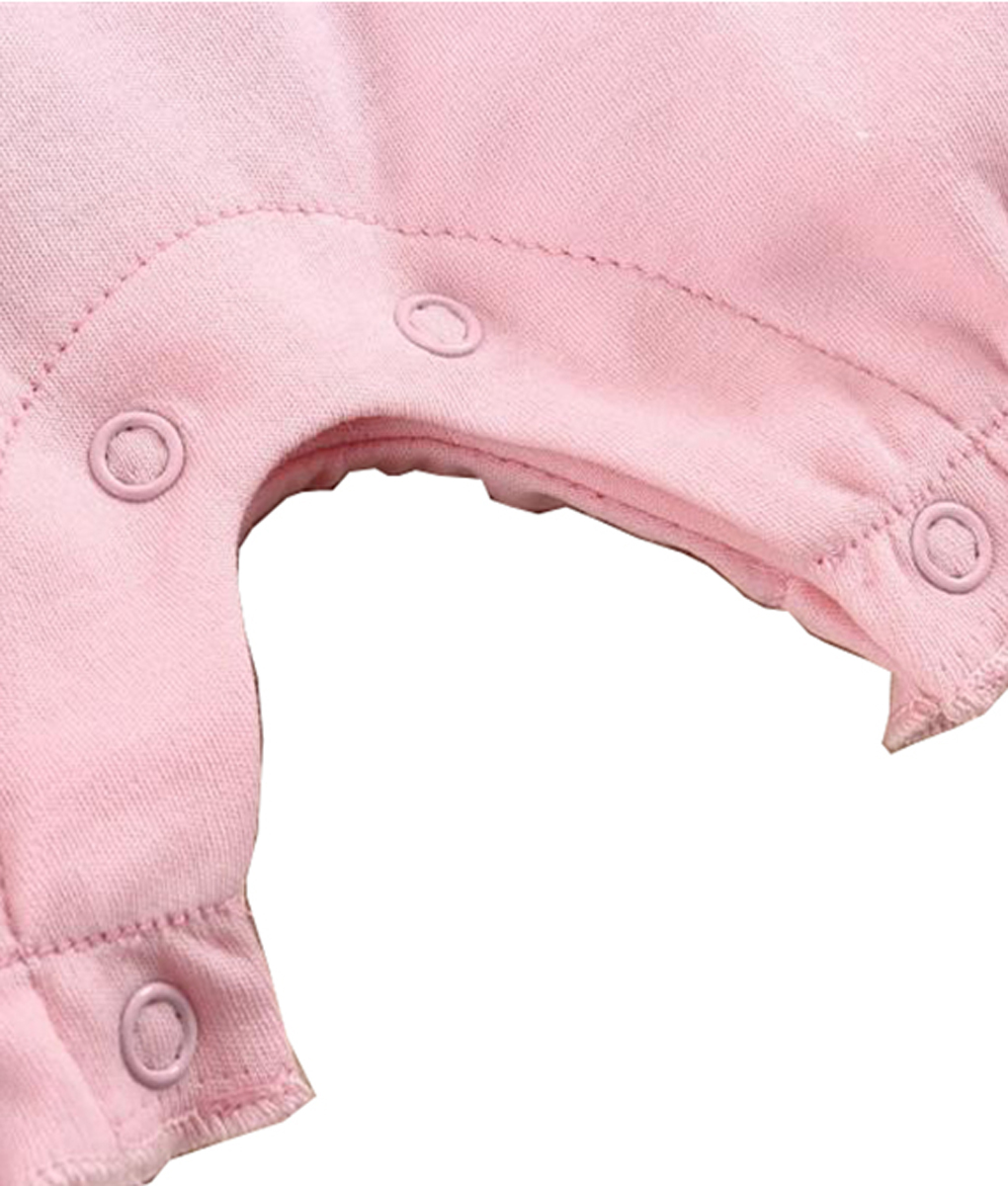 Romper bayi tanpa lengan bahan cotton yang nyaman untuk digunakan, warna pink dengan aksen pada kerah warna putih, gambar kelinci dan balon. Standard cutting.