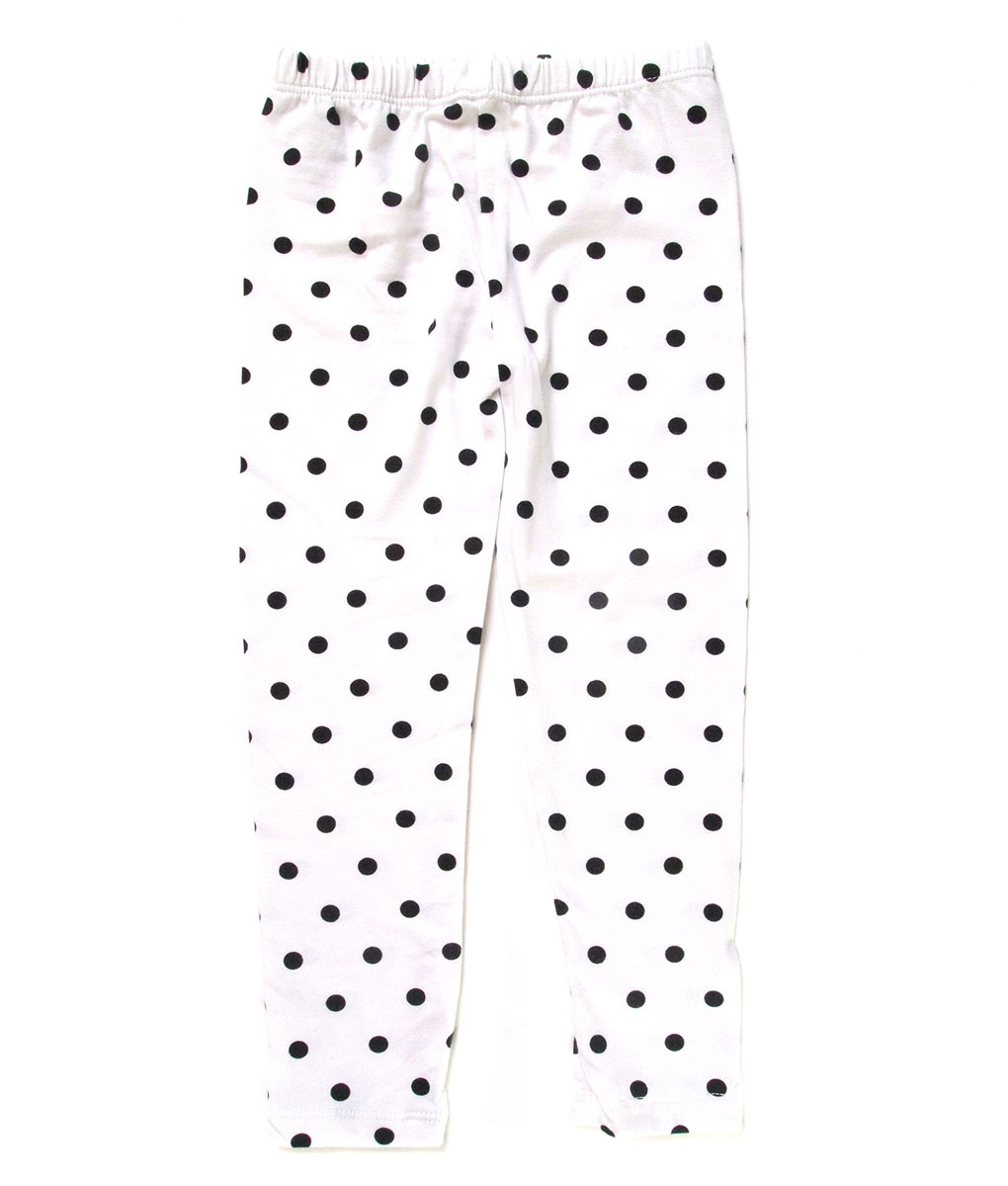 Legging bayi dan anak warna putih motif polkadot hitam. Fitted cutting.