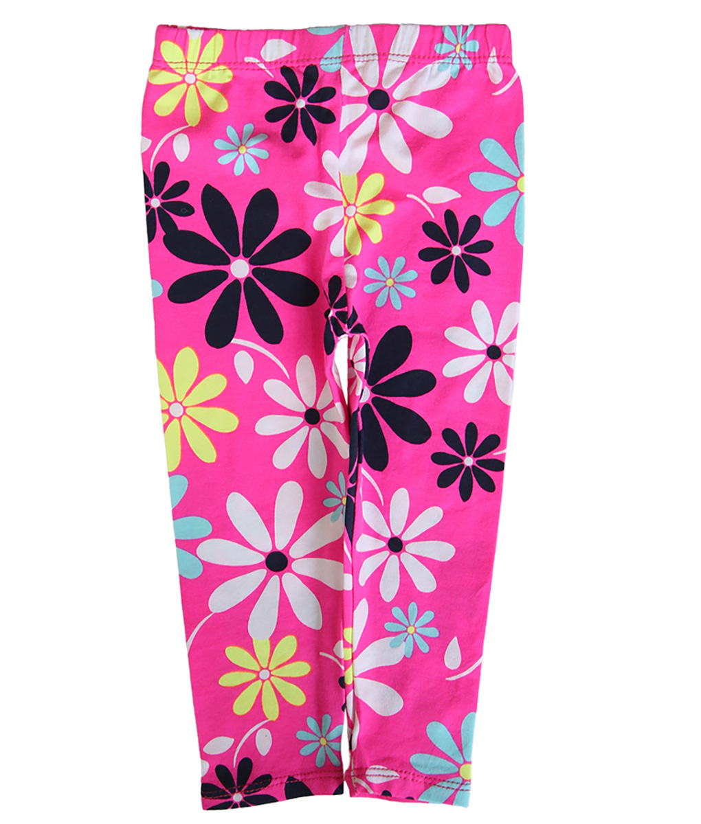 Legging bayi dan anak warna putih motif bunga-bunga pink. Fit cutting.