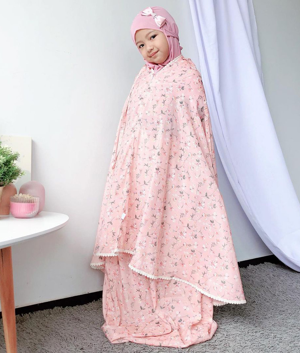 Mukena dwifungsi yang bisa digunakan seperti mukena biasa atau mukena ponco.