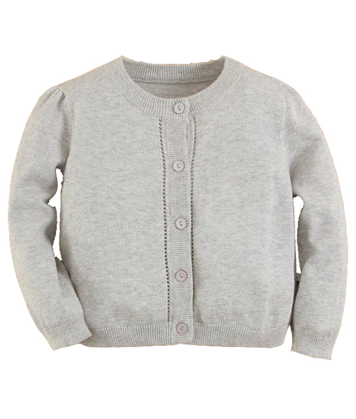Cardigan polos yang simpel dengan banyak pilihan warna, halus dan nyaman dipakai, aksen rajut garis pada kerah, dada, dan ujung lengan, aksen rajut jarang pada dada, mudah dipadukan dengan pakaian si kecil. Standard cutting.