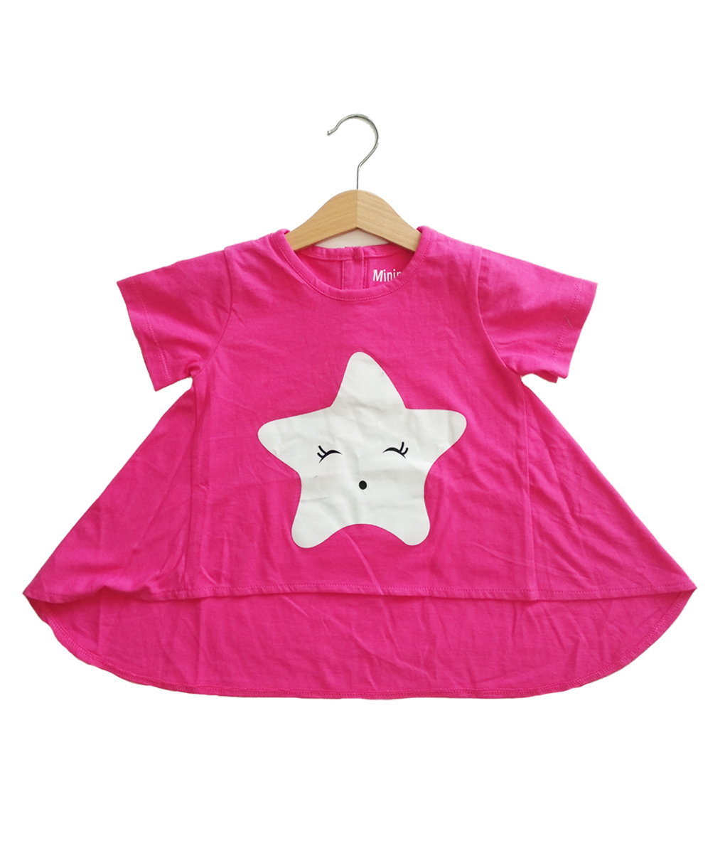 Kaos dengan desain potongan A line untuk si cantik usia 3-5 tahun. Warna pink dengan bintang yang lucu. Pas dikenakan untuk kegiatan harian si kecil. Standar cutting.