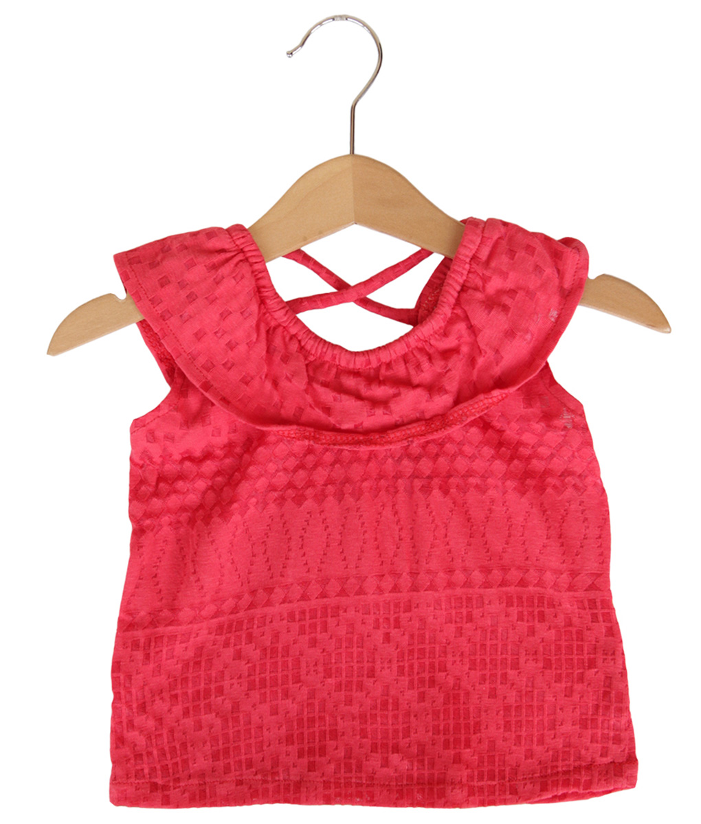 Atasan tanpa lengan warna putih bercorak tribal, dengan aksen kerah ber-cape dan tali sling pada bagian punggungnya. Membuat atasan ini terlihat semakin gaya saat dikenakan oleh si kecil. Standard cutting.
